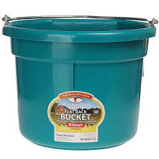 Little Giant Flat Back Bucket in 8-quart size is convenient around the barn and at the shows. These durable buckets are made from impact-resistant polyethylene resin and are unlikely to warp or crack. The flat back fits more compactly against a wall or fence.