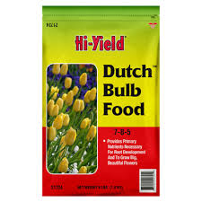 Use Hi-Yield Dutch Bulb food when planting all flowering bulbs at planting time in spring or fall. Dutch Bulb Food supports root and bulb growth with primary nutrients. That translates into bigger, more beautiful blooms, just like in the fertile fields of Holland. Can also be applied to established plants. 4 lbs. bag.
