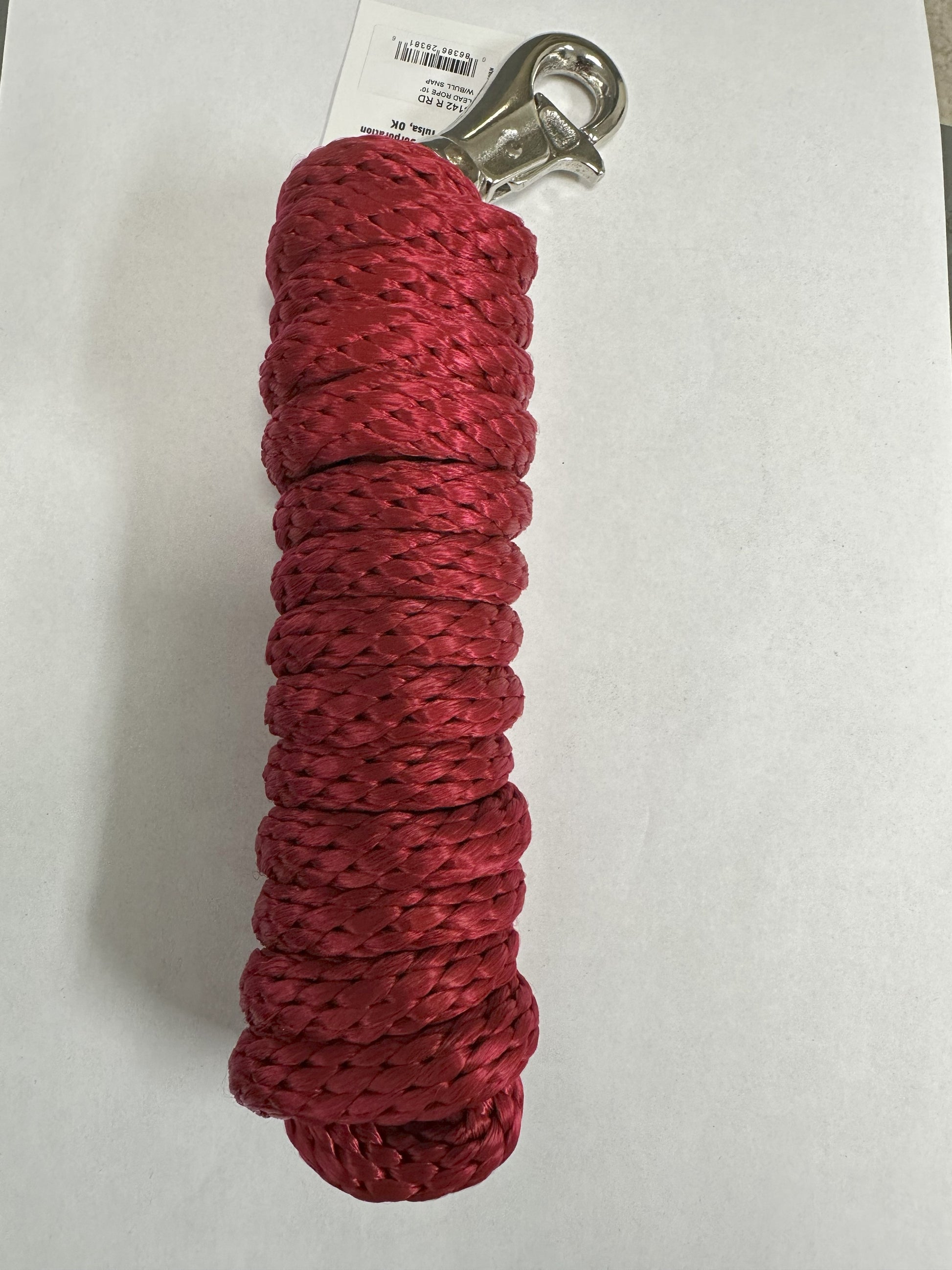 LEAD ROPE 10' POLY W/BULL SNAP RED